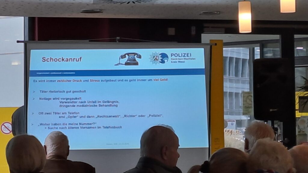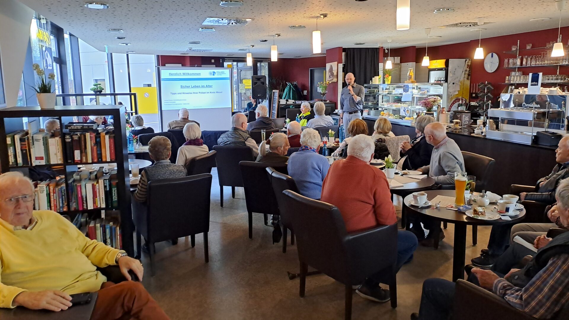 Der Vortrag von Hauptkommissar Richard Devers stand unter der Überschrift “Sicher Leben im Alter“, dem zahleiche Gäste am 13.11.2025 mit großem Interesse im Café Pilatus folgten.
